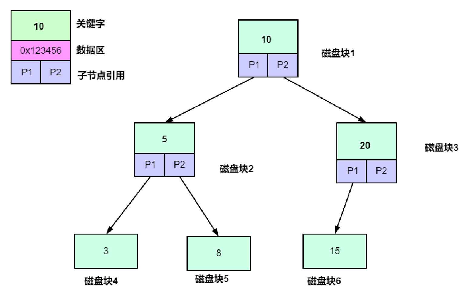 在RDBMS系统中,索引都是存储在磁盘中的.操作系统与磁盘的交互是采用页为基本的交换单位.一页数据大小是4KB,再加上操作系统的预读能力[空间局部性原理],一次磁盘的IO交互将会带来N页的数据返回.但是在上图中,我们不难发现,一个磁盘块能承载的数据内容只有一个关键字,一个数据区内容,两个子节点的指针.肯定填充不满4KB或是8KB,16KB的空间.一次低性能的磁盘IO.确只能带会仅仅少量的有效数据.