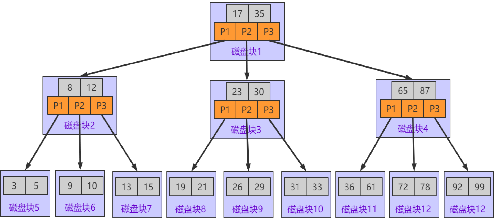 在二叉树中,一次只能加载一个关键字进行匹配.但是在B-树,一次可以加载N个关键字,若将磁盘块(节点)的空间大小固定(MySQL中定义为16KB).磁盘块能存储的关键字个数就会与单个关键字内容占用的空间相关.基于预读和操作系统磁盘交互特性.磁盘I/O一次加载的内容正好都是需要比对的内容.将内容的多次I/O加载转换成在内存中进行数据的比较.