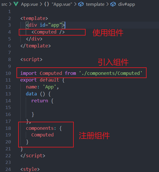 首先我们在components目录下新建一个Computed.vue文件,并在App.vue中注册该组件。