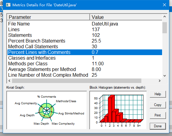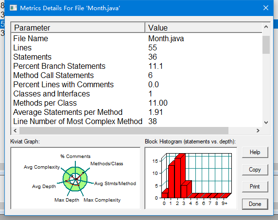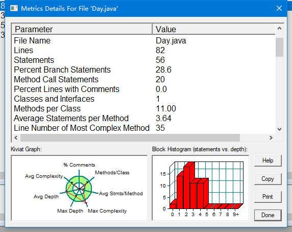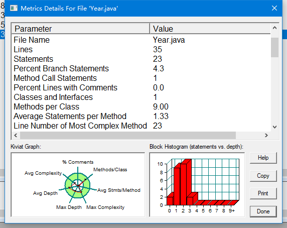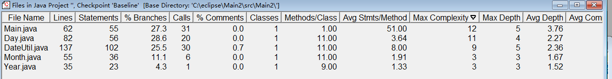 总体性能分析和改善意见:对使用循环对复杂度影响的概念也有了一定概念,尽可能避免使用if语句,且用switch代替,改善意见的话,和之前日期类聚合1得到想法相似,就是当前程序不足的是在DateUtil类中写的求下几天及求前几天需要得到改进,在该方法中,使用的是循环求前一天得到的,完全没有如何的优化,使用暴力求解的,但在之后我认为如果数据够大,完全可以求到下一年的1.1日,然后直接进行跨年相加,到同年时可以进行相加月份天数,可以大大的减少运行时间,对大数据的处理更加友好.