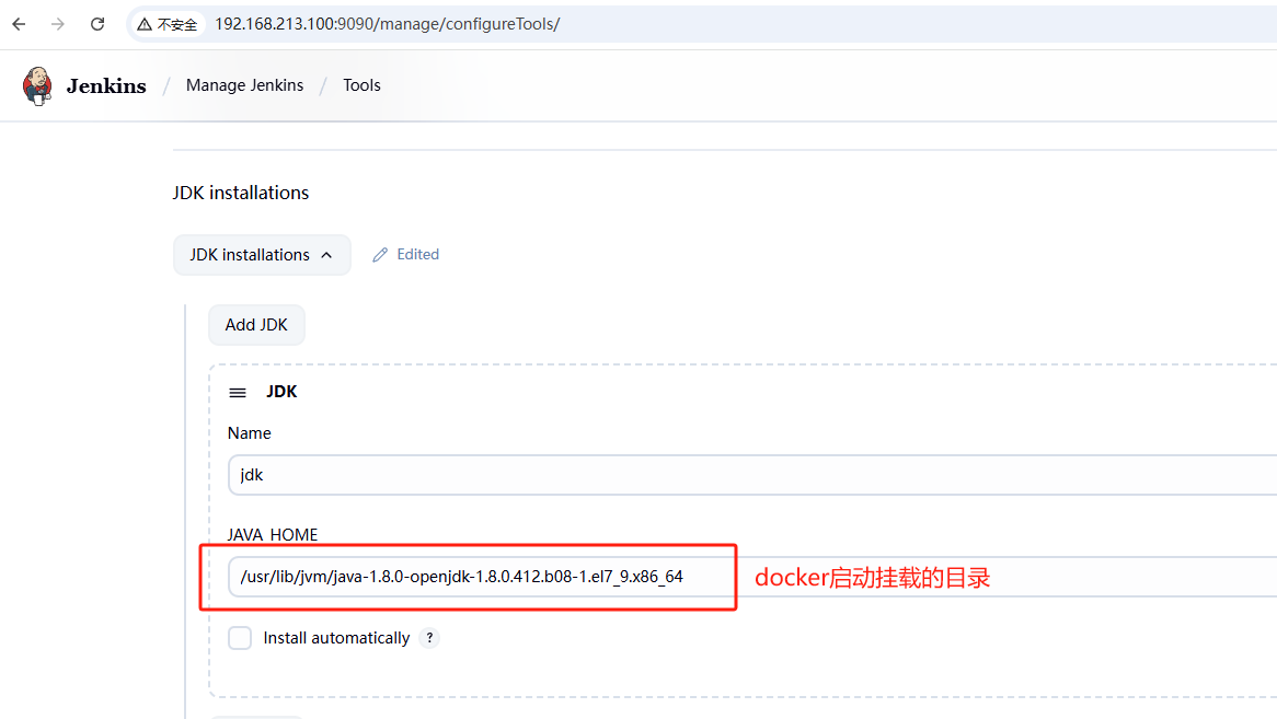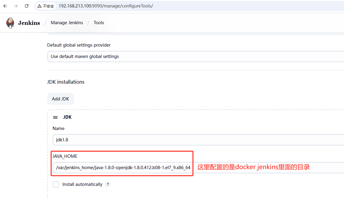 由于docker安装的Jenkins,默认安装的jdk版本是21,如果java代码编译需要jdk1.8那么需要安装jdk1.8,结合maven进行编译构建: