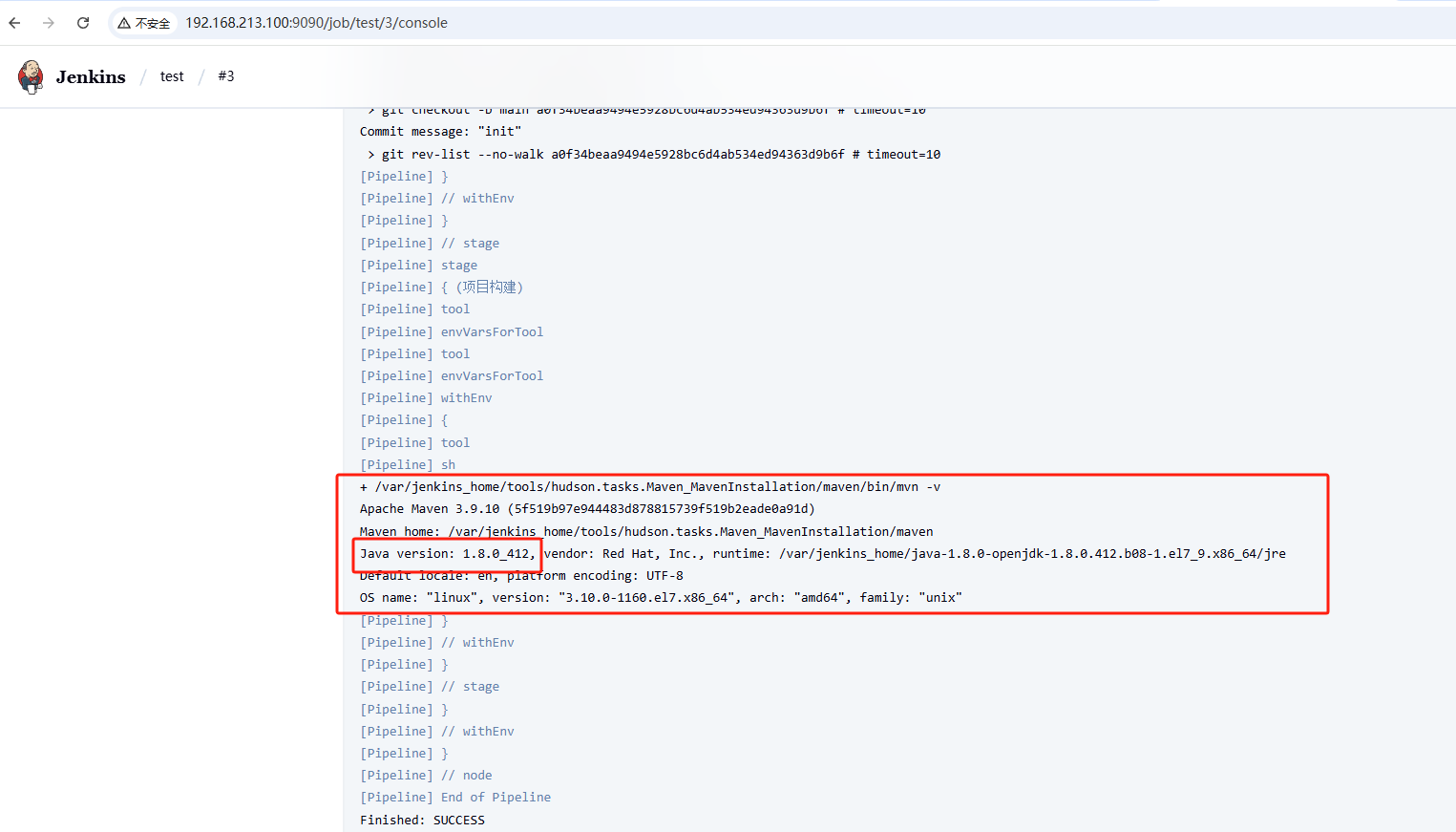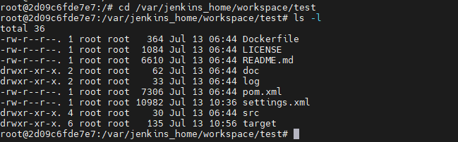 [root@localhost ~]# docker exec -it jenkins /bin/bash root@82dd2453561d:/# /var/jenkins_home/tools/hudson.tasks.Maven_MavenInstallation/maven/bin/mvn -v Apache Maven 3.9.10 (5f519b97e944483d878815739f519b2eade0a91d) Maven home: /var/jenkins_home/tools/hudson.tasks.Maven_MavenInstallation/maven Java version: 21.0.7, vendor: Eclipse Adoptium, runtime: /opt/java/openjdk Default locale: en, platform encoding: UTF-8 OS name: "linux", version: "3.10.0-1160.el7.x86_64", arch: "amd64", family: "unix"