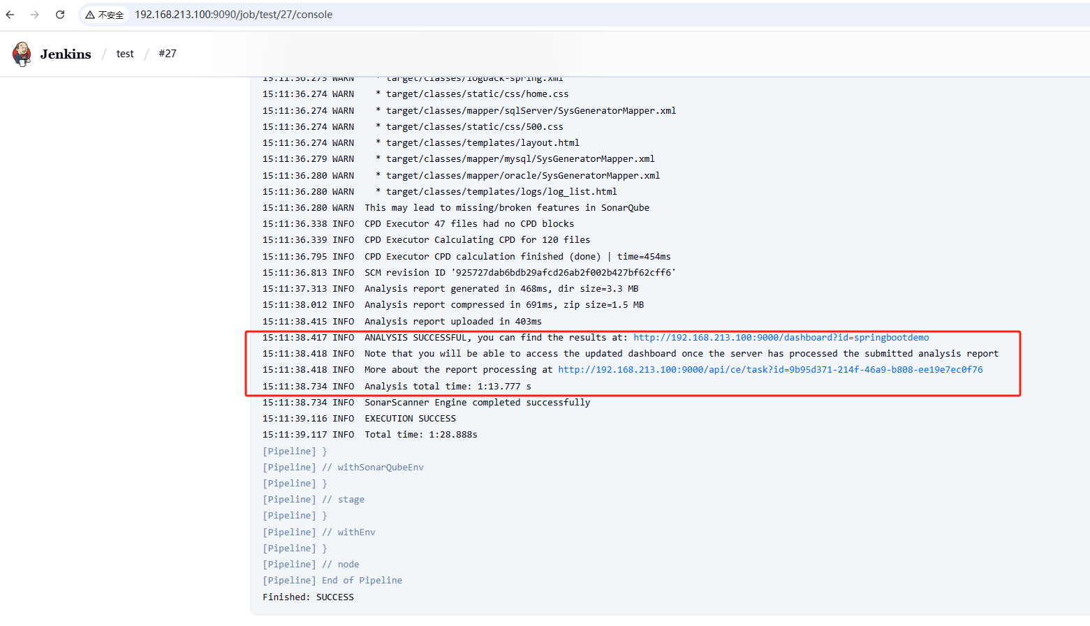 sh "${scannerHome}/bin/sonar-scanner -Dsonar.projectKey=springbootdemo -Dsonar.projectName=springbootdemo -Dsonar.language=java -Dsonar.java.binaries=target/"