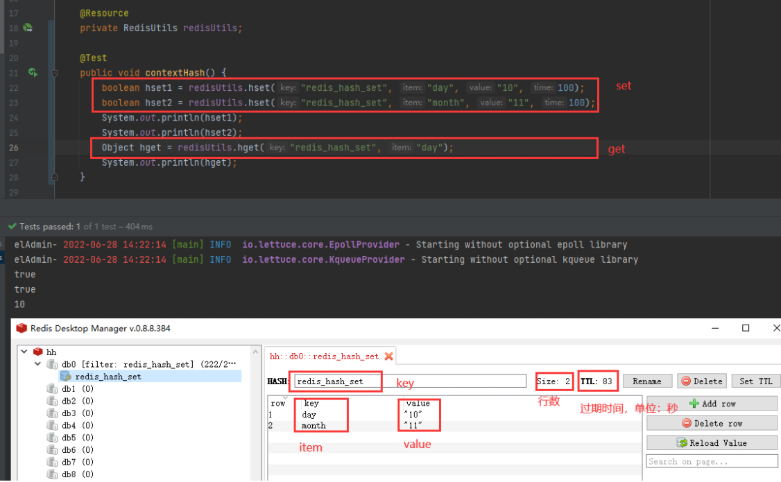 boolean hset1 = redisUtils.hset("redis_hash_set", "day", "10", 100);
