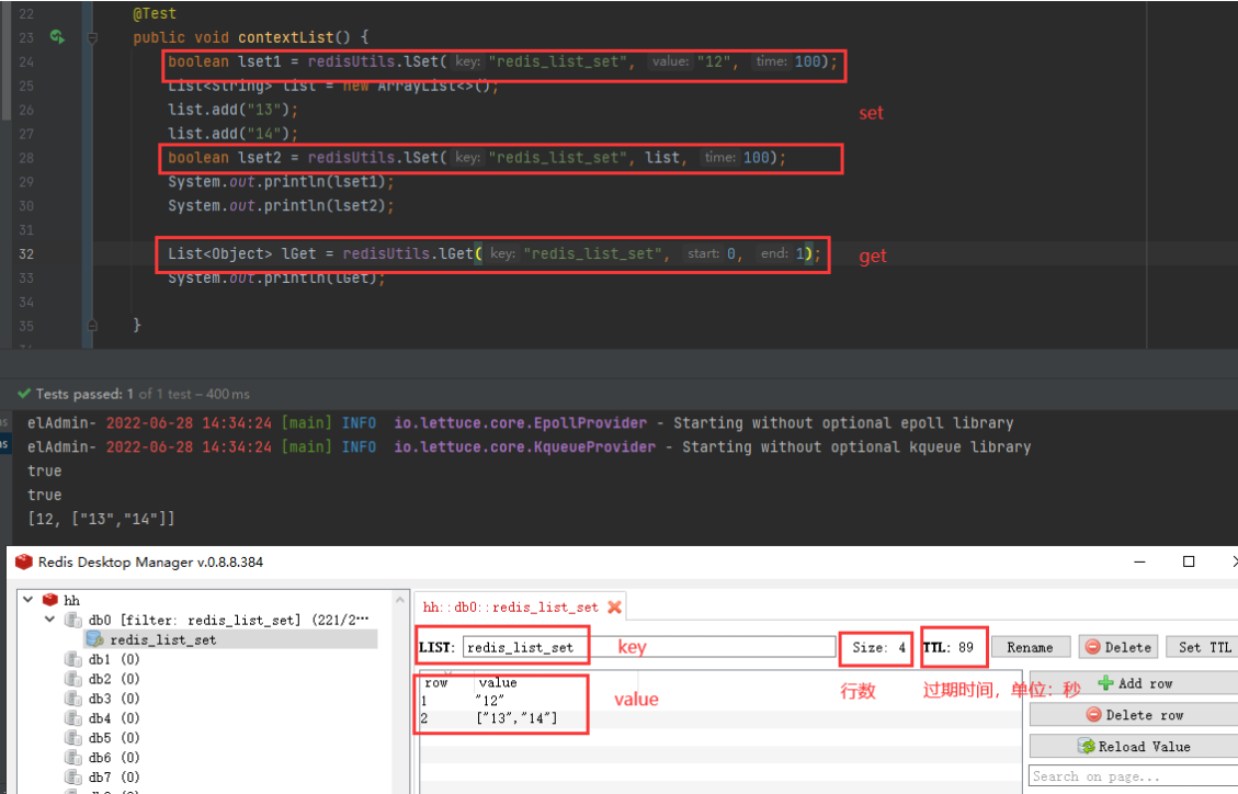 boolean lset2 = redisUtils.lSet("redis_list_set", list, 100);