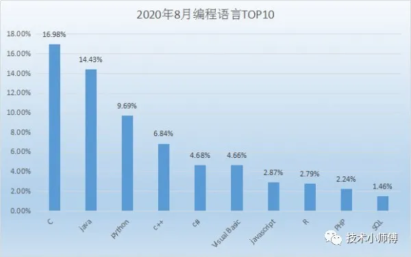 我们来看看上面这张表,最新8月份的计算机编程语言的排行又出来了,这个排行仍然用的是一个TIOBE指数去定义,这个指数是什么意思大家可以自行百度。