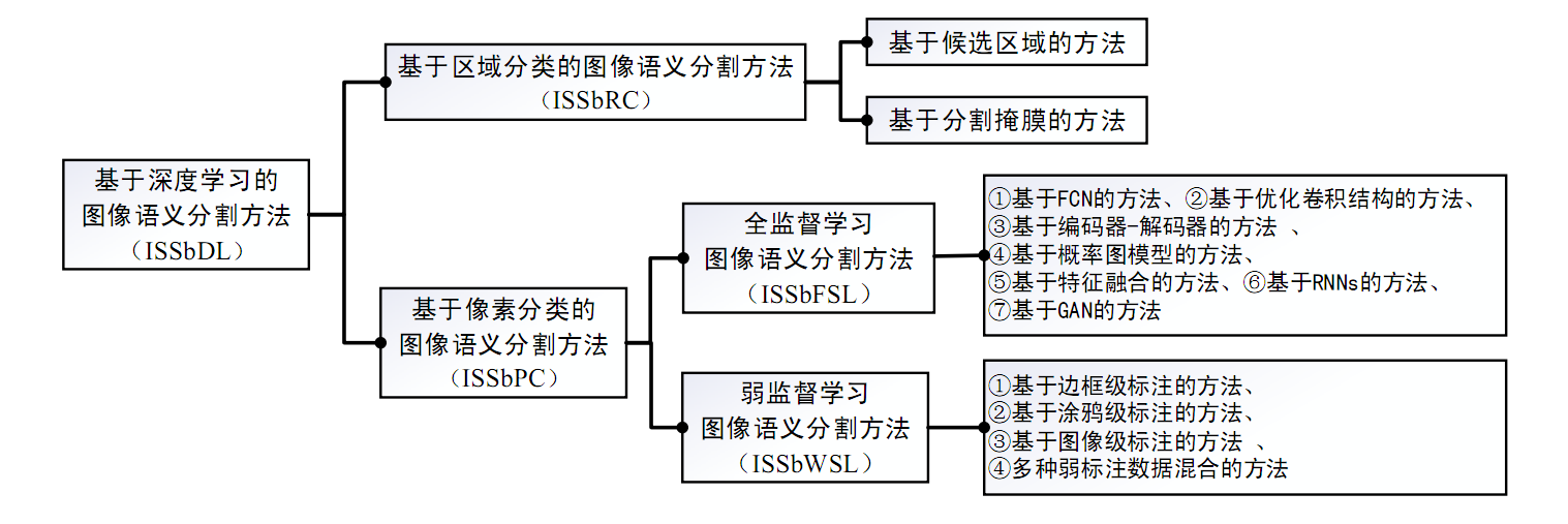 与研究现状进行分类、梳理和总结.根据分割特点和处理粒度的不同,将基于深度学习的图像语义分割方法分