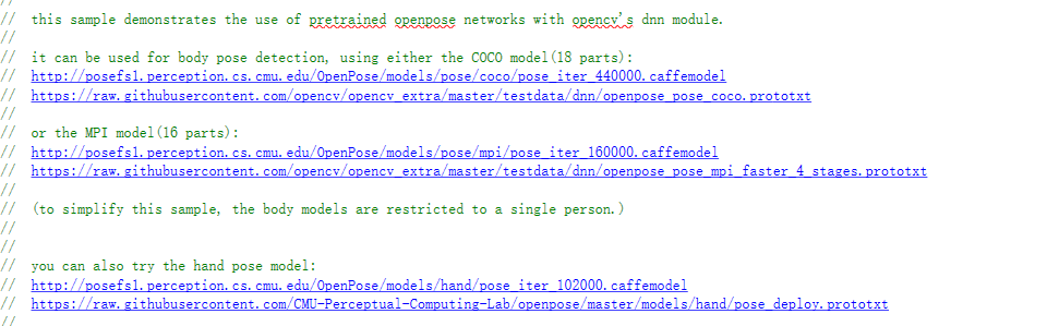 有了前面的基础,现在我们实现openpose应该是比较有把握的,浏览代码,能够发现这几行代码可以根据pretrained的caffemodel不同,实现不同的处理效果。