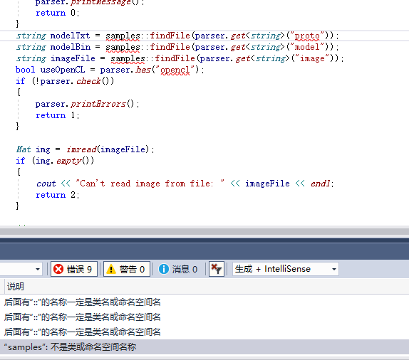 那么这个错误主要是说samples不存在。虽然我也不知道这个以 samples开头的命名空间是用来做什么的,但是它的目的就是获得model的几个地址,那么可以直接写死。