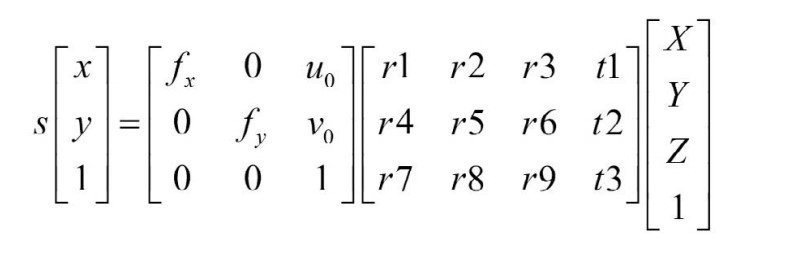 第一个矩阵,显然是3X3的内参矩阵;第二个矩阵的内容是输入的点,以相机为坐标系中心。它有一个旋转向量(3X3)和一个平移向量(3X1)组成。
