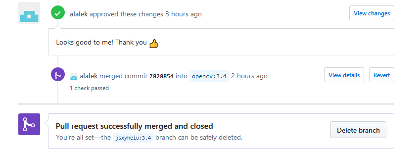 PR,特别是对OpenCV这样的伟大项目的PR,应该说非常有价值意义。值得投入时间进行研究,尽快提高PR成功的可能。