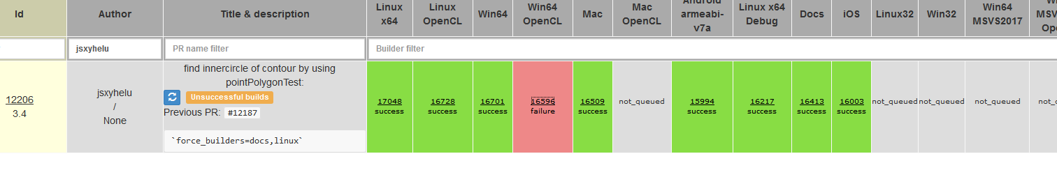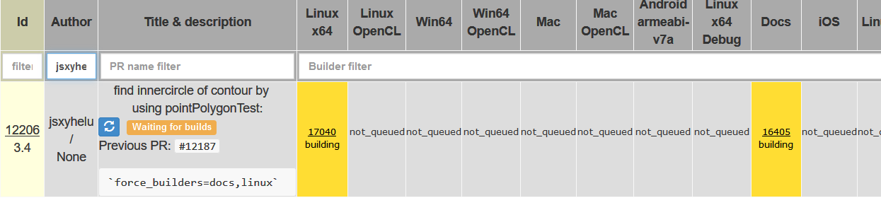 opencv的pr是自动编译的,如果编译不通过,肯定不会被merge,首先要过的就是merge这关