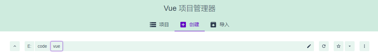 2) 使用vue项目管理器,点击“创建”,输入项目名称,点击“下一步”: