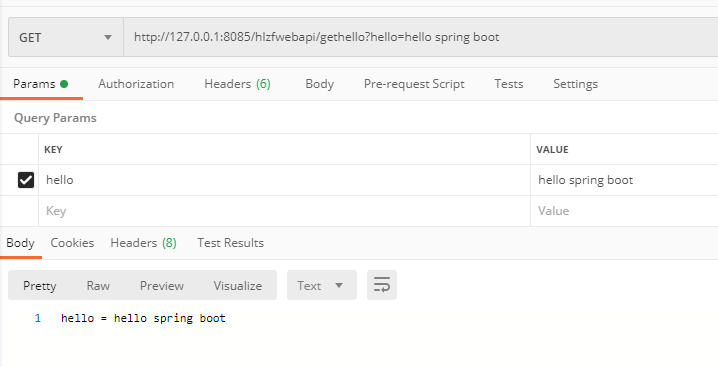 @CrossOrigin @RequestMapping(value = "/hlzfwebapi/hello", method = RequestMethod.GET) public String hello() { return "hello Spring boot"; }