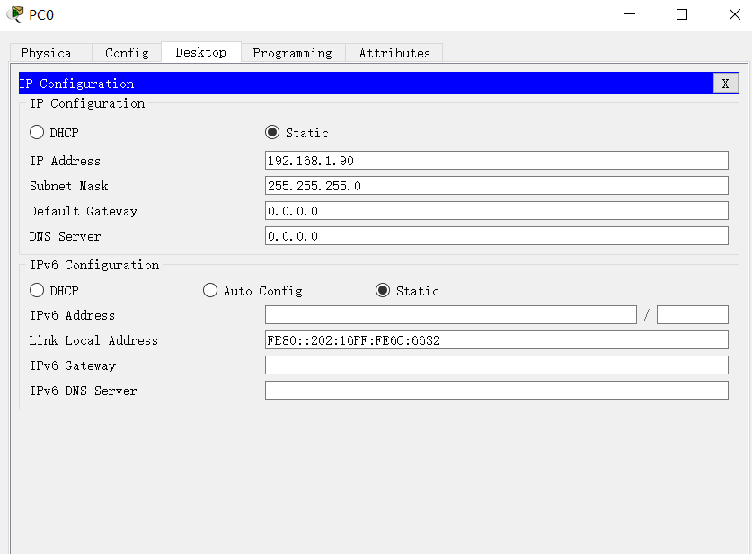 点击PC端点击Desktop设置PC端IP为 (192.168.1.90)