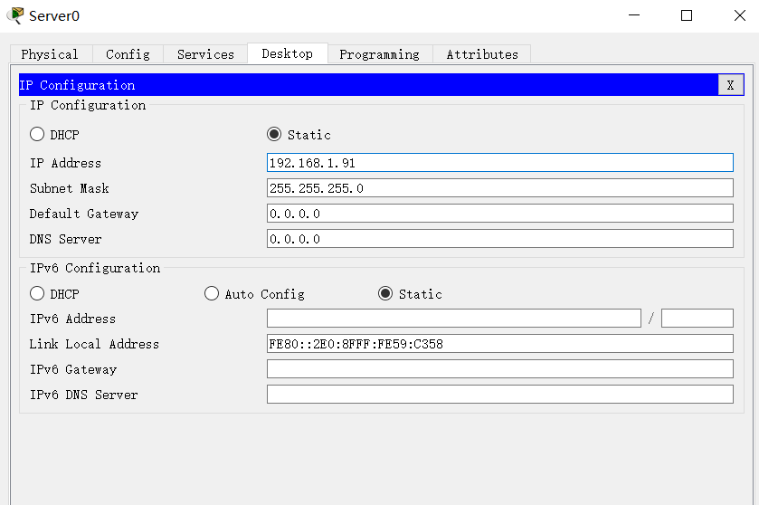 使用一个PC端和一个Server端建立网络拓扑结构