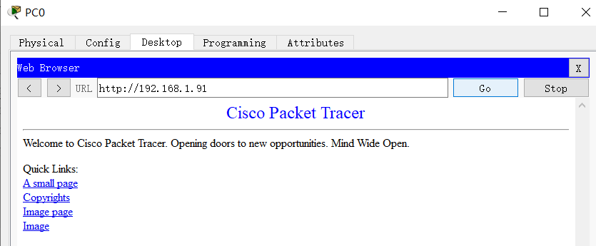 熟练使用Packet Tracer工具。分析抓到的HTTP数据包,深入理解:HTTP协议,包括语法、语义、时序。