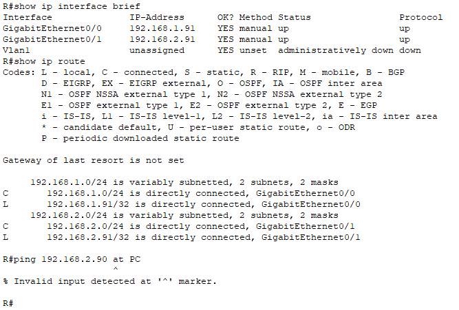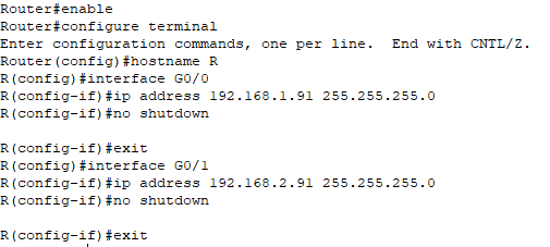 - 设置路由器G0/0端的ip地址为192.168.1.91