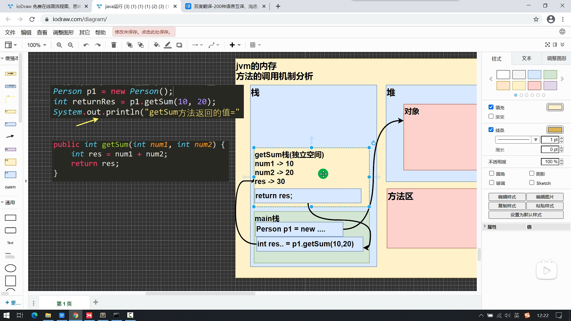 1)当程序执行到方法时,就会开辟一个独立的空间(栈空间)