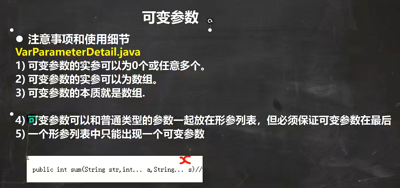 //分析 1. 方法名 showScore 2. 形参(String ,double... ) 3. 返回 String