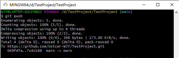 $ git clone https://github.com/Ustcer-WJT/TestProject.git