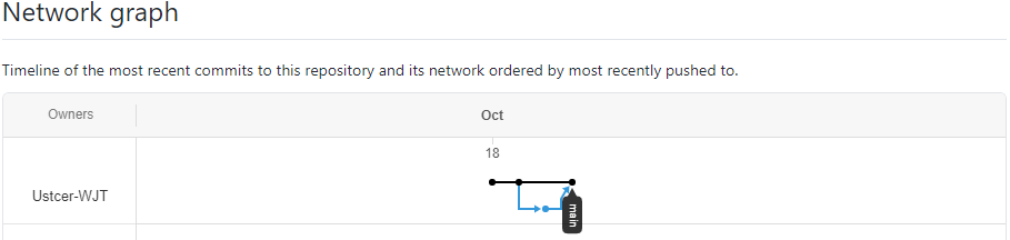 ④完成后,可以在github对应仓库的Insights下面的Network中看到对应的Network graph,如下图蓝色的分支可以看出分支上有一次合并到master。