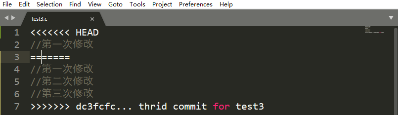 ③打开冲突文件,可以根据提示选择保留哪个更改,也可以直接编辑文件去掉提示信息。
