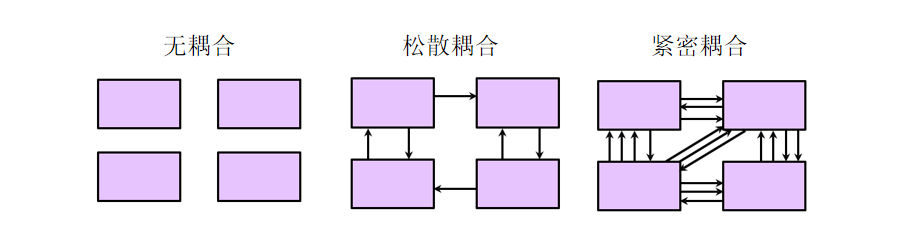 ①耦合度:耦合度是指软件模块之间的依赖程度,一般可以分为紧密耦合、松散耦合和无耦合。一般在软件设计中我们追求松散耦合。