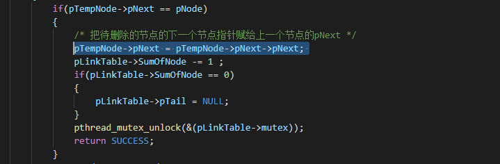 ③ Linktable链表的数据结构中包含pthread_mutex_t mutex用于临界区的互斥,在创建Linktable链接时使用了pthread_mutex_init初始化来mutex,清空链表之后彻底删除链表之前使用pthread_mutex_destroy销毁了mutex。以DeleteLinkTable函数为例