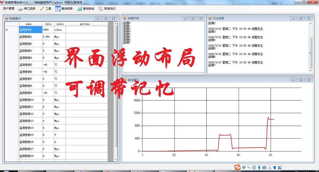 C#上位机开发源码 上位机项目源代码 采用基于RS485通讯总线的ModbusRtu协议,支持用户权限管理、sqlite数据库、实时曲线、历史曲线、历史报表、导出Excel、主界面布局可调带记忆等功能