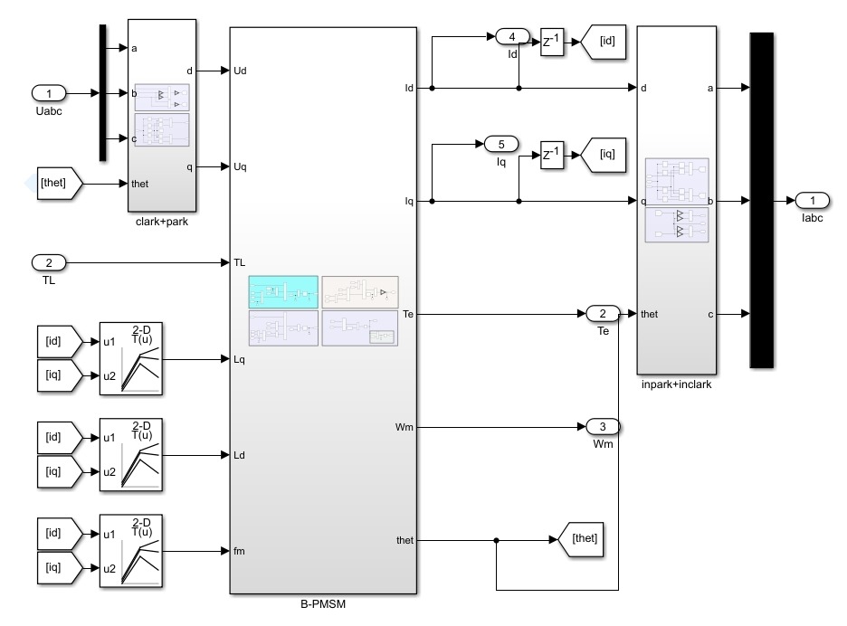 经仿真验证:同等条件下其各项输出与Simulink自带的永磁同步电机模块基本一致。
