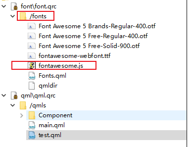 PS:最开始没有将js文件放进资源文件里,但是由于QML的import多层路径文件,会出现找不到路径和文件的情况,为了方便还是都放进资源文件里吧。。