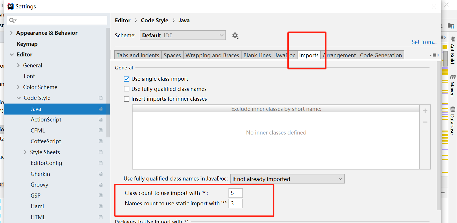编辑 file -- >settings --> Code Style --> Java -- > imports