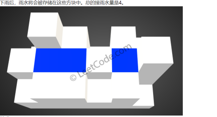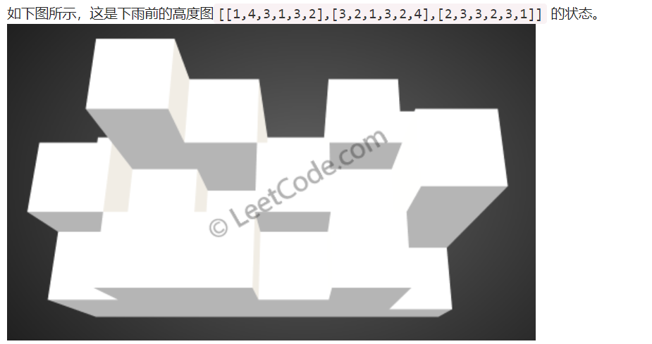 可使用以下代码,完成其中的trapRainWater函数,其中形参heightMap为上述的二维高度图,返回接到的雨水量。