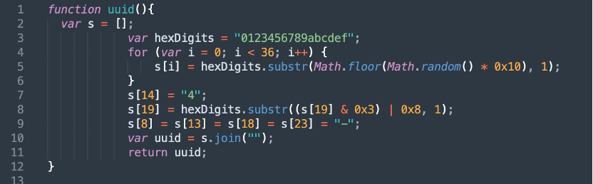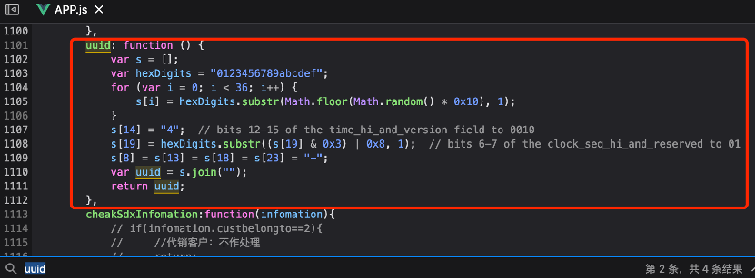 找到对应的uuid()算法逻辑