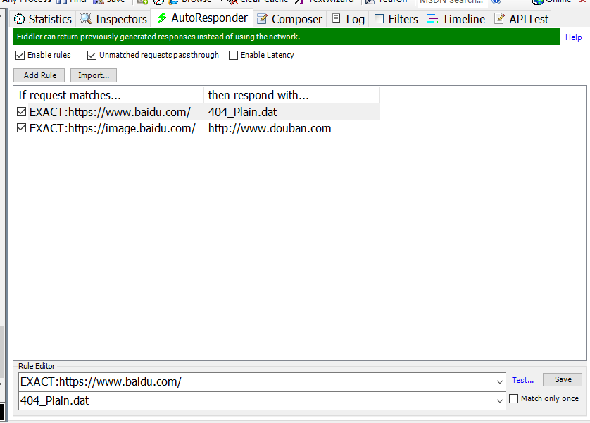 拦截某一请求,并重定向到本地的资源,或者使用 Fiddler 的内置响应