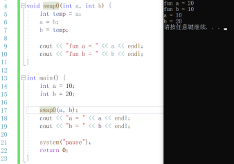 形参开辟一片新的内存空间,将实参的内容复制过来。所以在函数中修改形参的值不会更改实参的值。