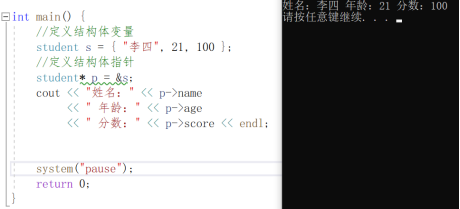 - 在定义结构体同时定义结构体变量struct student{ string name; int age; int score; }s3;