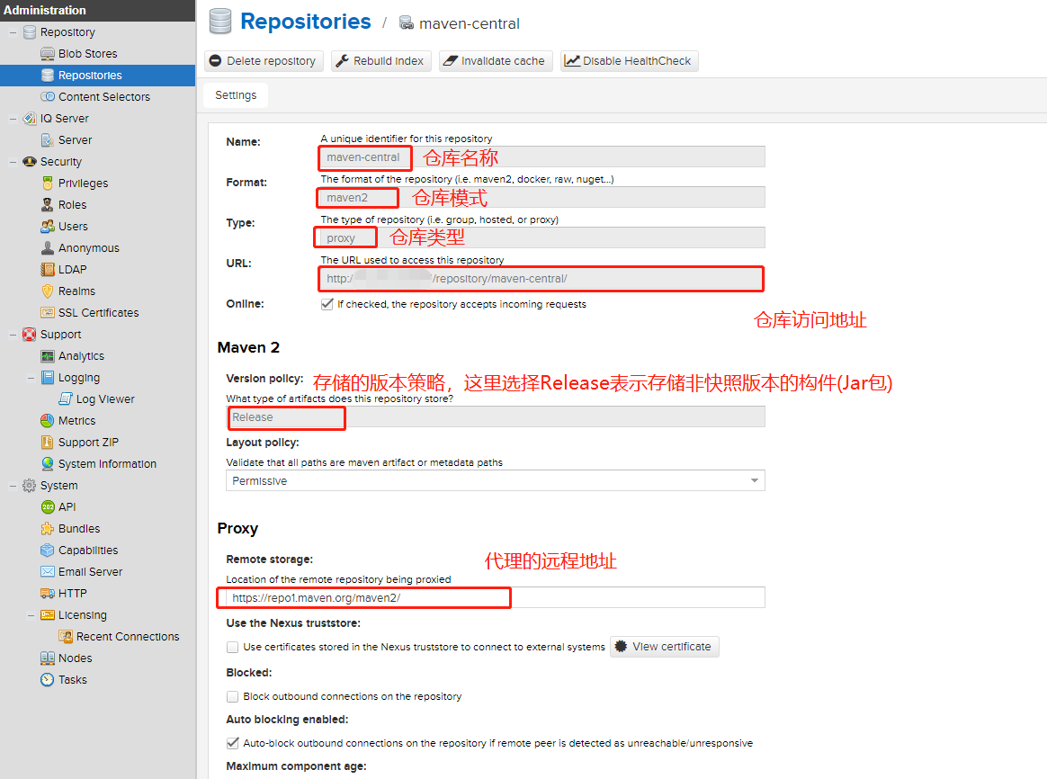 此外,创建仓库时可以通过 Policy(策略) 控制该仓库是Release(发布)/Snapshot(快照)/Mix(混合)类型