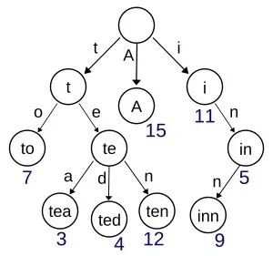 例如:对于“tea”这个词,你从根开始,被引导到t节点,然后是e,最后是a。因此,搜索单词需要O(N)的时间(其中N是单词的长度),如果单词的前缀不存在,则可以提前结束。如果我查询“zzzzzzzz”,树可以在“zz”之后结束查询。