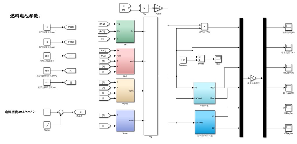 质子交换膜燃料电池(PEMFC) Simulink模型 包括静态模型和动态模型(两个独立模型 可计算输出电压、输出功率、效率、产热量、产水量、氢氧消耗速率等 附带参考公式、参考文献