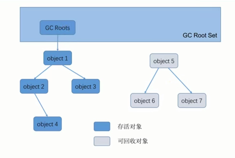 总结的大白话:就像树一样,只有根节点在GC Roots Set中才可以存活,如下图: