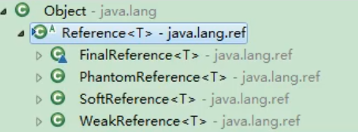除强引用外,其他3种引用均可以在java.lang.ref包中找到它们的身影。如下图,显示了这3种引用类型对应的类,开发人员可以在应用程序中直接使用它们。
