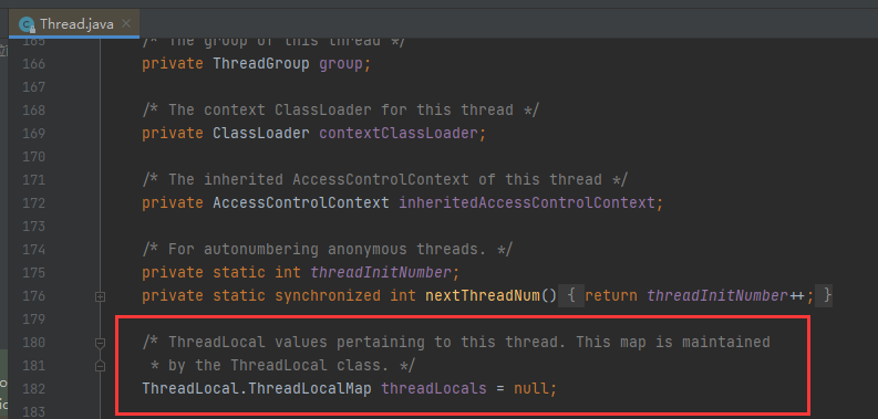 threadlocals对应在Thread里面的位置如下:(与此线程有关的ThreadLocal值。该映射由ThreadLocal类维护)