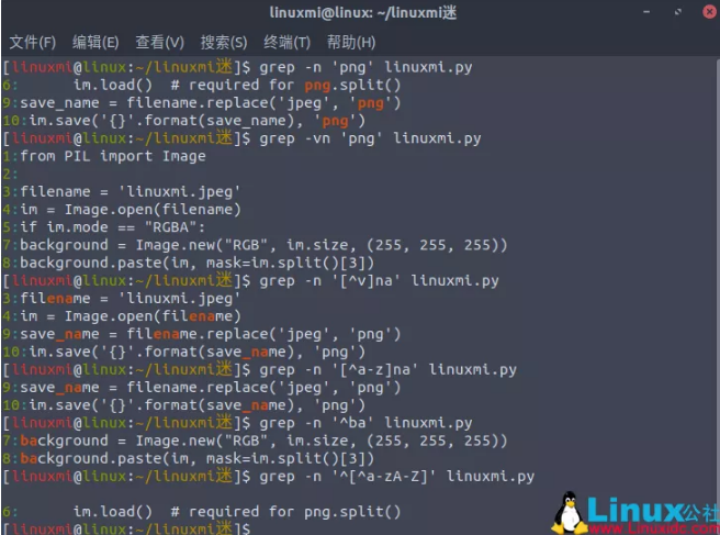 [linuxmi@linux:~/linuxmi迷]$ grep -vn 'png' linuxmi.py