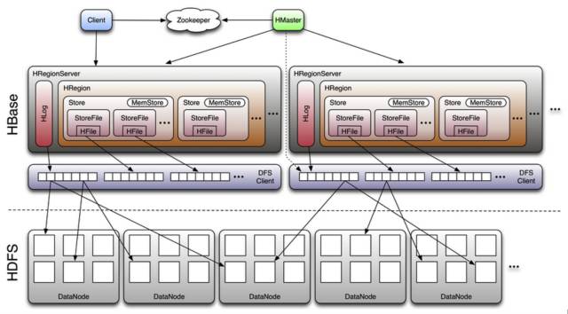 服务器多了,就需要一个管理者 HMaster,负责 HRegion 的分配、HRegionServer 负载均衡的处理 等事务