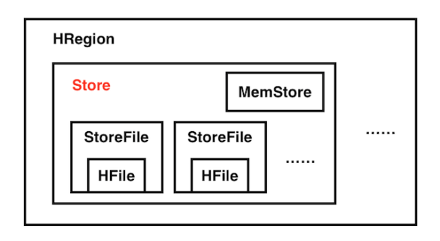 HRegion 内部会按照列族进行切分,分为多个 Store,每个 Store 保存一个列族,所以 HRegion 由一个或者多个 Store 组成