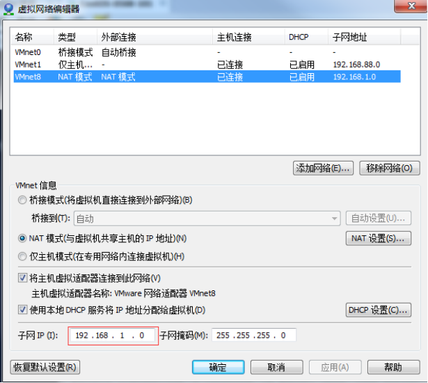 4.查看windows环境的中VMnet8网络配置,windows下虚拟机网络配置打开网络适配器配置 NAT为VMware8
