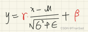 我们的IN在进行初步“减均值比标准差”操作过后,还需要通过γ和β来进行线性变换,即: