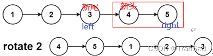 比如上图这个rotate为2,先定位到红色框框的范围,再处理指针即可。具体处理细节很简单啦,直接看代码,代码中left和right最终的位置我也在上图标出来了。